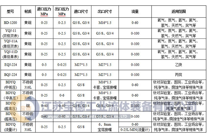 氣體減壓器規格表