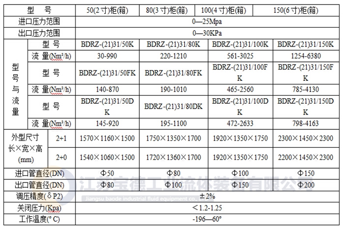 調(diào)壓柜(箱)主要型號技術參數(shù)